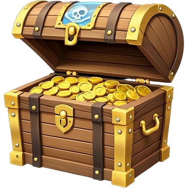 pirate treasure chest object icon, wooden chest with gold details, slightly open with coins, 3D cartoon, mobile game icon style, centered, clean background, no text, no watermark emoji
