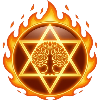fire blazing, glowing merkaba with iconic tree of life emoji