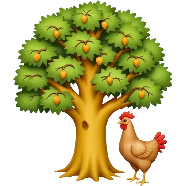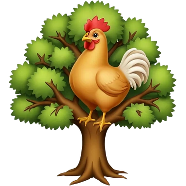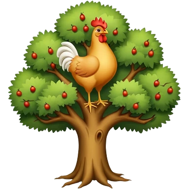 a tree with no leaves and a huge chicken on top emoji