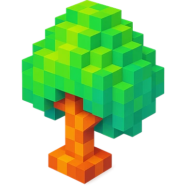 A voxel-style tree with green leaves and a brown trunk, vibrant colors, simple geometric shapes, and a glossy finish emoji