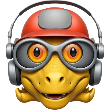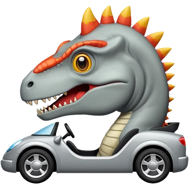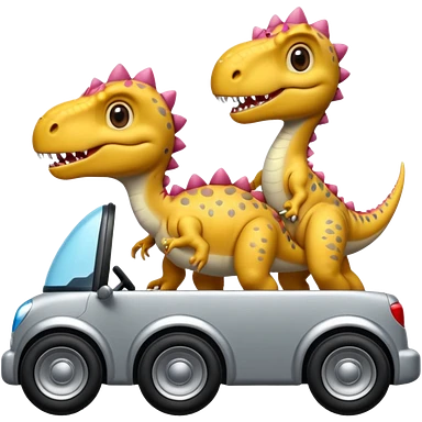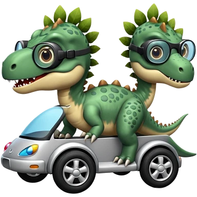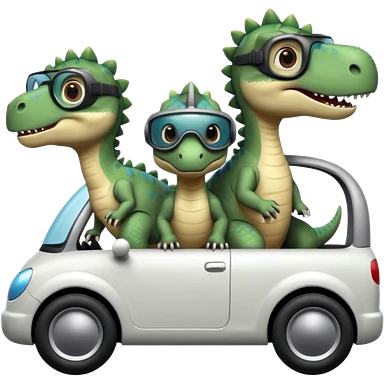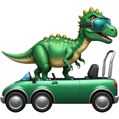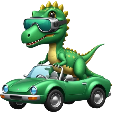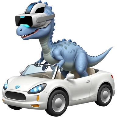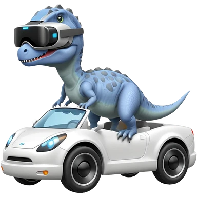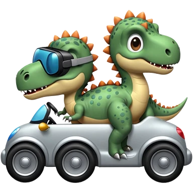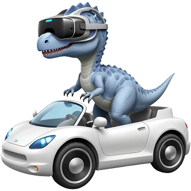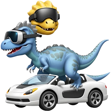 Dinosaurio subido en un carro tecnológico con lentes de realidad virtual emoji