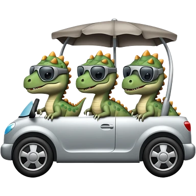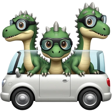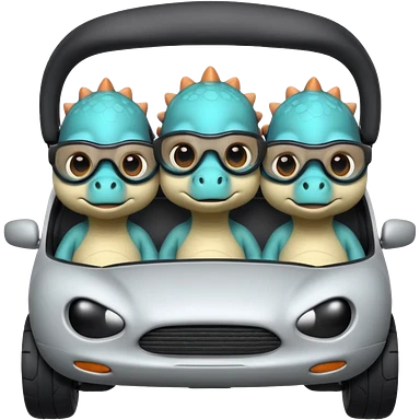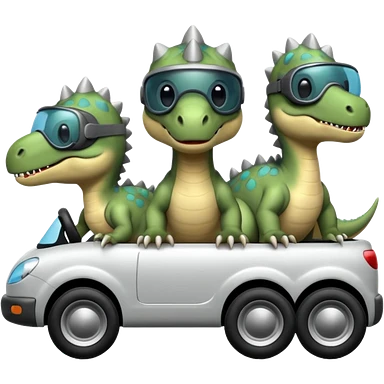 Tres dinosaurios bebés grises cada uno subido en un carro tecnológico blanco con lentes de realidad virtual emoji | AI Emoji Generator