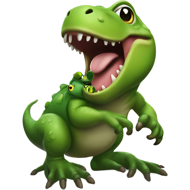 Trex getting tickled by a frog emoji | AI Emoji Generator