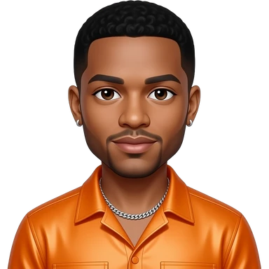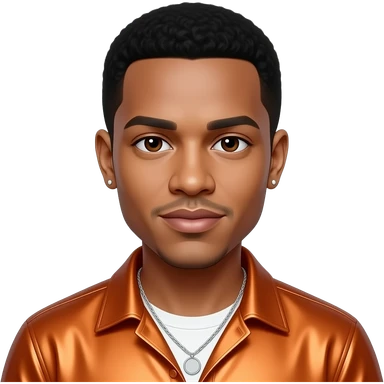 Trey Songz with dark brown eyes, black hair, orange metallic shirt, silver necklace and short earrings emoji