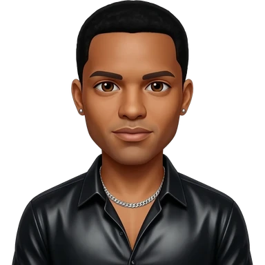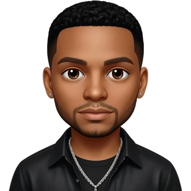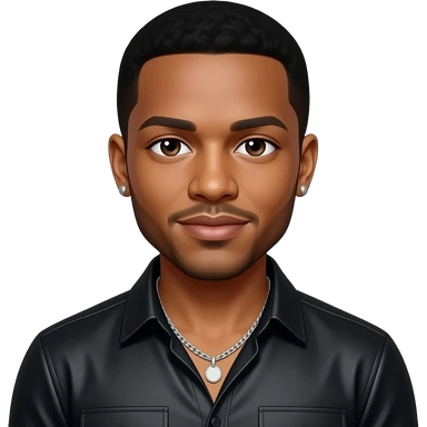 Trey Songz with dark brown eyes, black hair, black metallic shirt, silver necklace and short earrings emoji