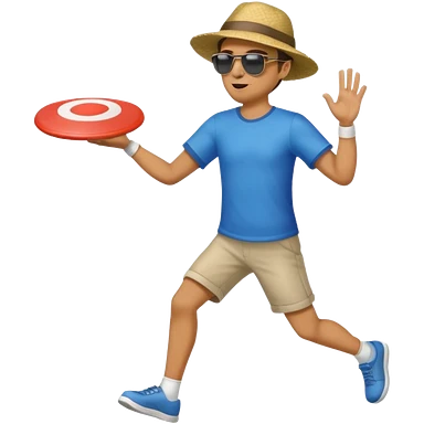 elf male legolas launching a frisbee woven from pure sunlight, wearing sporty teal swim shorts and performance sunglasses, athletic pose, pointy ears, dynamic motion lines, beach sky backdrop, centered emoji emoji