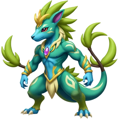 Tribal Exotic Ivy Planty Meloetta-Zygarde-Zeraora-Renamon-Protogen-Palkia-hybrid-fusion-Fakémon-creature, full body emoji