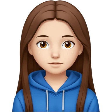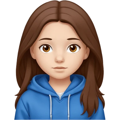 teen girl, white skin, long brown hair middle parted, brown eyes, blue hoodie emoji