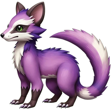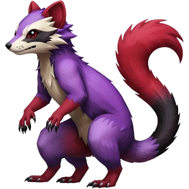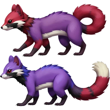 Purple, red, black Trico-Sergal-Furret-Ferret-Wolverine-Vernid-fusion-Fakemon-animal-hybrid-creature, full body emoji