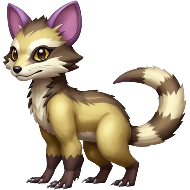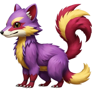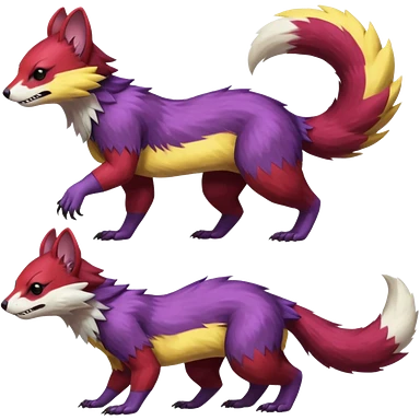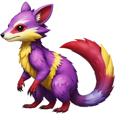 Purple, red, yellow Trico-Sergal-Furret-Ferret-Wolverine-Vernid-fusion-Fakemon-animal-hybrid-creature, full body emoji