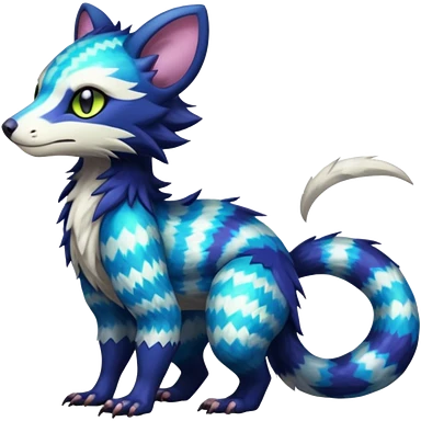 Colorful luminescent glowing Trico-Sergal-Furret-Ferret-Wolverine-Vernid-furry-fursona-fusion-Fakemon-animal-hybrid-creature, full body emoji