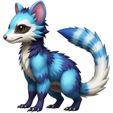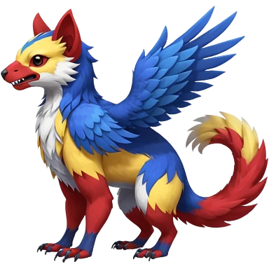 Blue-red-yellow, white-breasted Gryphon-Trico-Sergal-Furret-Ferret-Wolverine-Vernid-fusion-Fakemon-animal-hybrid-creature, full body emoji