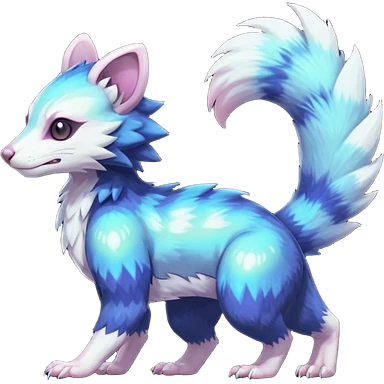 Colorful luminescent shiny iridescent glowing Trico-Luxray-Sergal-Furret-Ferret-Wolverine-Vernid-furry-fursona-fusion-Fakemon-animal-hybrid-creature, full body emoji