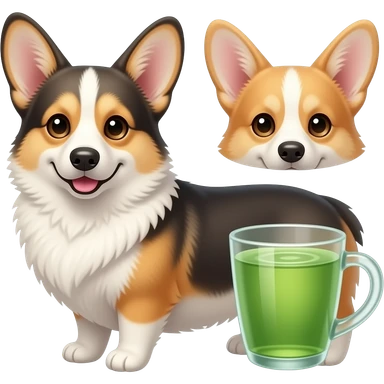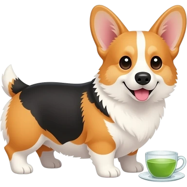 tricolor corgi drinking green tea emoji | AI Emoji Generator