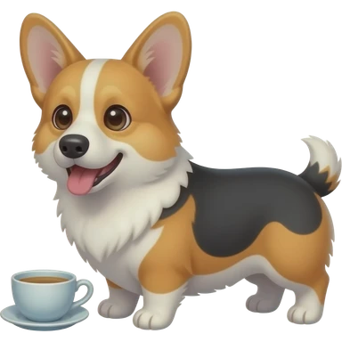 tricolor corgi with tea emoji