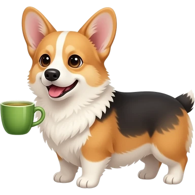 tricolor corgi with green tea emoji