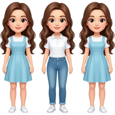 Trillizas con el pelo castaño largoi blancas de piel, con el cuerpo entero emoji