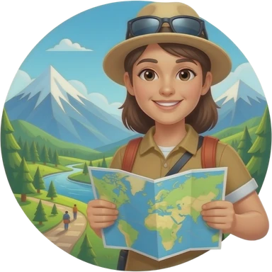 Russian man and elegant Latina girl in adventure outfits with a map planning a trip Montenegro in the background emoji