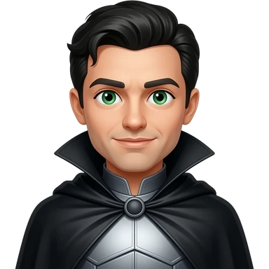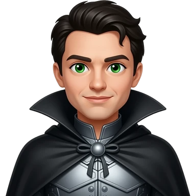 Liir from The Wonderful Wizard of Oz with green eyes, black hair, grey metallic tunic, black metallic cloak emoji