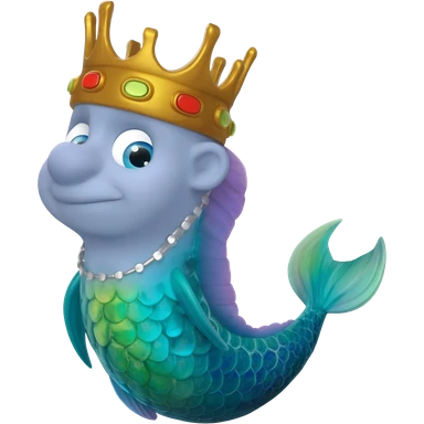 boy, black hair, brown eyes, white skin, Triton, with Triton in hand and blue Triton tail on the side. emoji