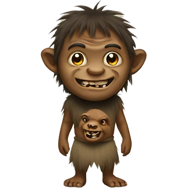 troll with wild hair clutching a miniature yelling elderly man, humorous, apple emoji style emoji