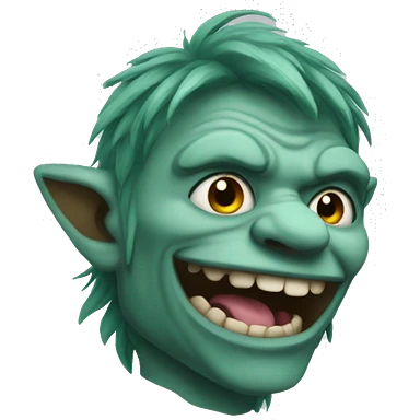 Depressed trollface with its tongue sticking out and left eye facing left and right eye facing right emoji