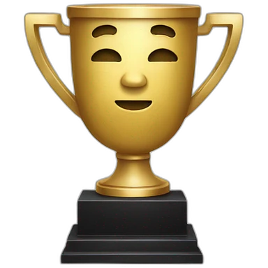 Blonde man holding a baby, standing next to 2 trophies emoji