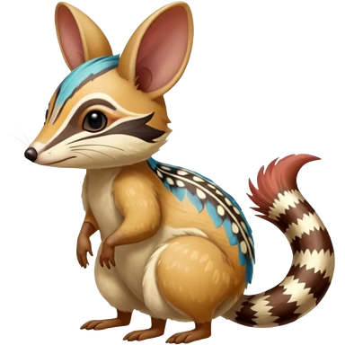 Tropical Exotic Colorful Floral Feathery Numbat-Bilby-Quoll-Furret-Fakémon-furry-fursona-creature (full body) emoji | AI Emoji Generator