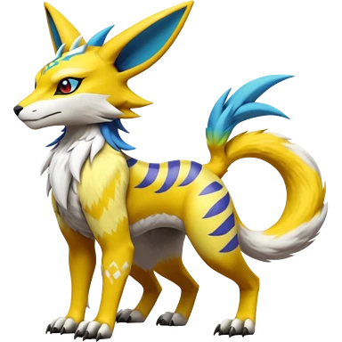 Cool Edgy Shiny Futuristic Ethereal Legendary Zeraora-Digimon-Jolteon-Renamon-Pokemon-hybrid full body emoji
