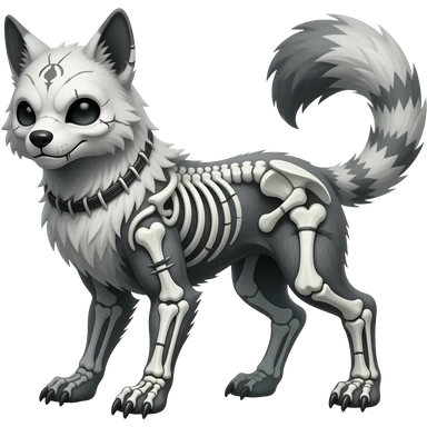 Tropical feathered-Bird-skull-masked bleak swampy white-skeletal gloomy dark pale albino foggy eldritch beautiful realistic edgy fantasy ghoul-like stitched vernid-sergal-fursona animal creature with a tufted tail full body with intricate markings emoji | AI Emoji Generator