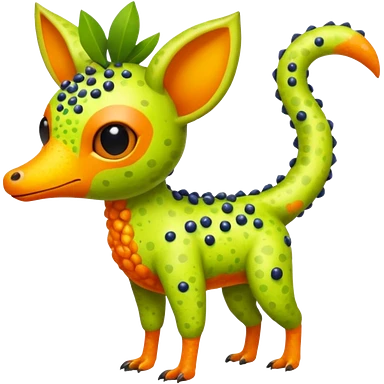 Bright Tropical Fruit-Colored Lime-Orange-Berry Speckled Vernid-Trico-creature inspired by LiLaiRa (full body) emoji