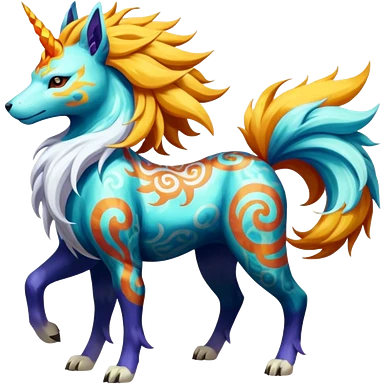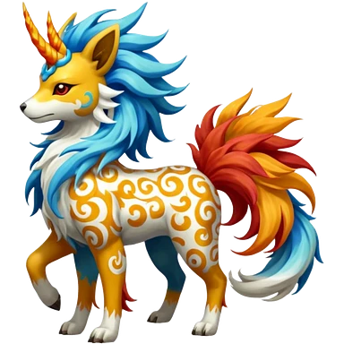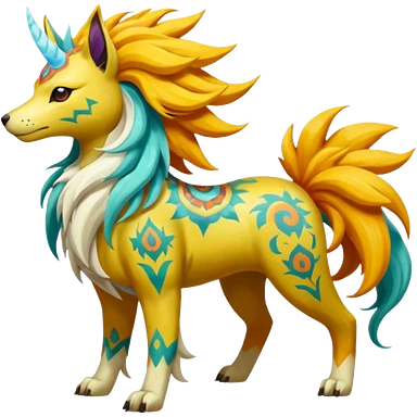 Graceful Elegant Tropical Tiny Marked Patterned Tribal Colorful Painted Oriental Asian Patterned Tropical Exotic Toxic Suicune-Solgaleo-Rapidash-Arcanine-fusion-hybrid-creature (full body) emoji