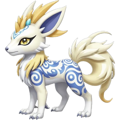 Tropical Tiny Marked Patterned Tribal Shiny Albino Painted Oriental Asian Patterned Tropical Exotic Toxic Suicune-Meloetta-Renamon-Absol-fusion-hybrid-creature (full body) emoji