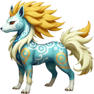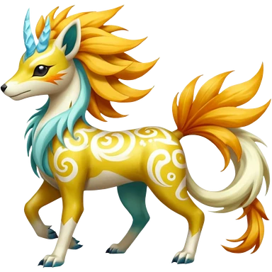 Graceful Divine Loyal Merciful Marked Patterned Colorful Painted Oriental Asian Patterned Tropical Exotic Toxic Suicune-Solgaleo-Rapidash-Arcanine-fusion-hybrid-creature (full body) emoji