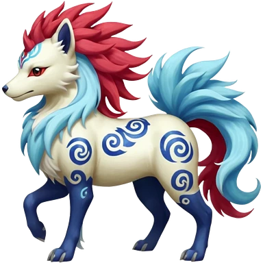 Marked Patterned Colorful Painted Oriental Asian Patterned Tropical Exotic Toxic Suicune-Solgaleo-Rapidash-Arcanine-fusion-hybrid-creature (full body) emoji