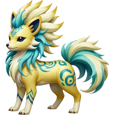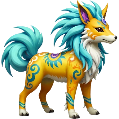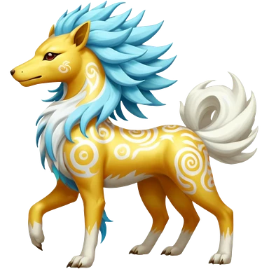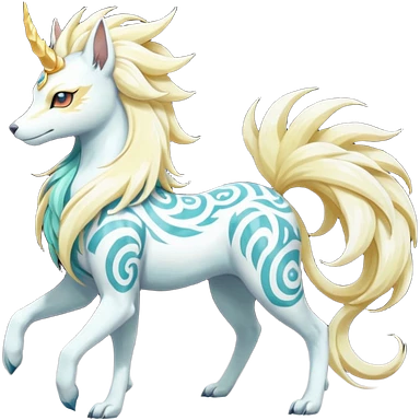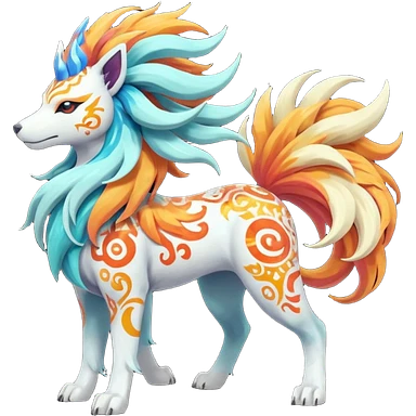 Tropical Tiny Marked Patterned Tribal Shiny Albino Painted Oriental Asian Patterned Tropical Exotic Toxic Suicune-Meloetta-Solgaleo-Rapidash-Arcanine-fusion-hybrid-creature (full body) emoji