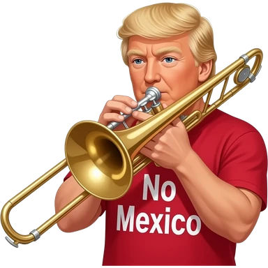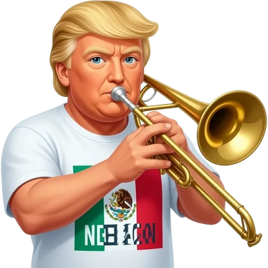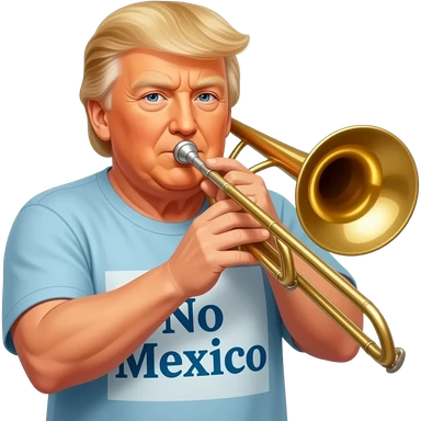 Trump playing trombone while wearing a shirt that says “ no Mexico” emoji