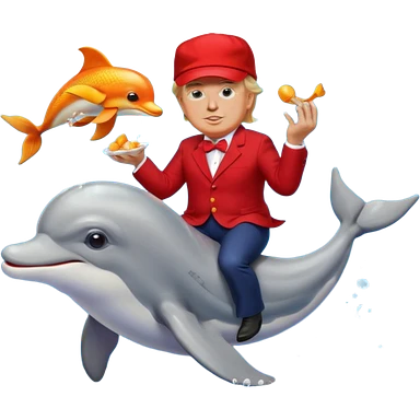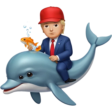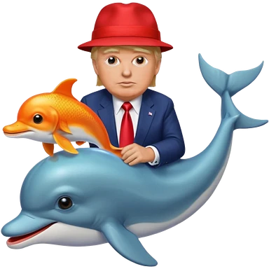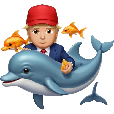 trump at walmart while riding a dolphin and eating goldfish emoji