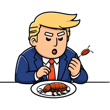 Trump in a suit, but with veneers, chains, and tattoos on his face. He is holding a glass in his hands. emoji