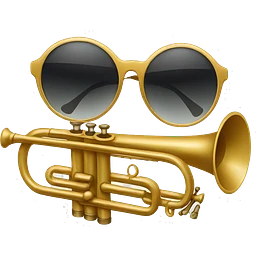 Create a sleek and professional emoji representing a Stomvi trumpet. The design should showcase the shiny, polished brass body of the trumpet with its distinct bell, valves, and tuning slides. Highlight the intricate keywork and the valve pistons, with detailed metallic accents and subtle reflections on the surface. The mouthpiece should be visible at the top of the instrument. Use golden and brass tones with light reflections to emphasize the smooth, high-quality finish. Add a few musical notes floating around the trumpet to evoke its bright and resonant sound. The background should be transparent. emoji