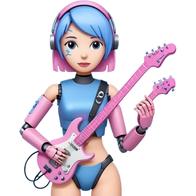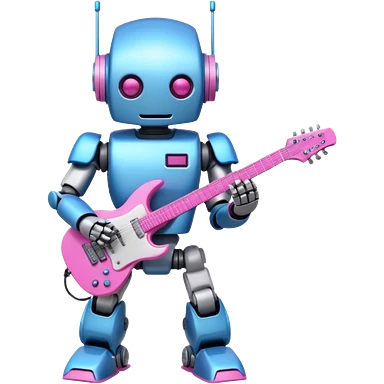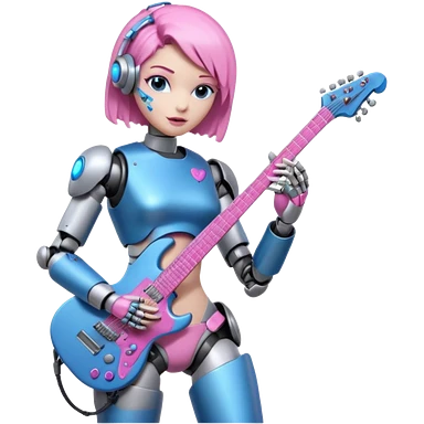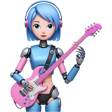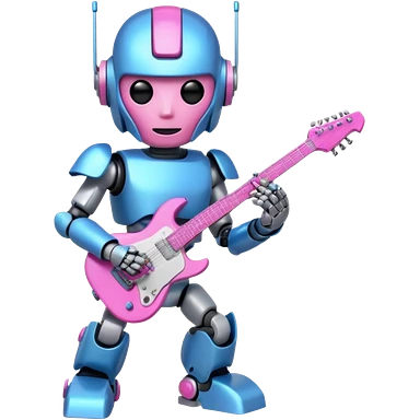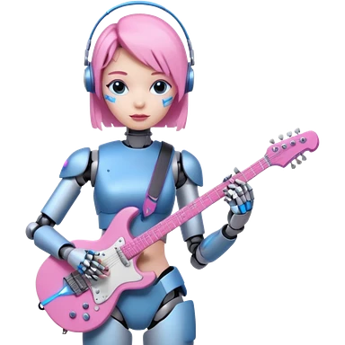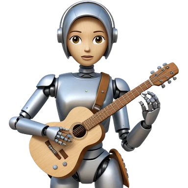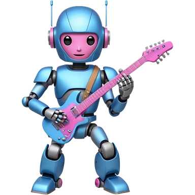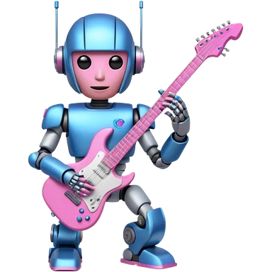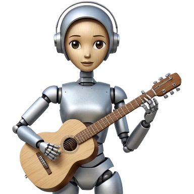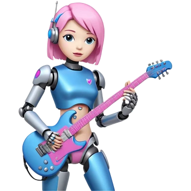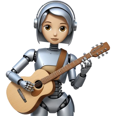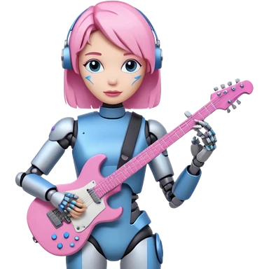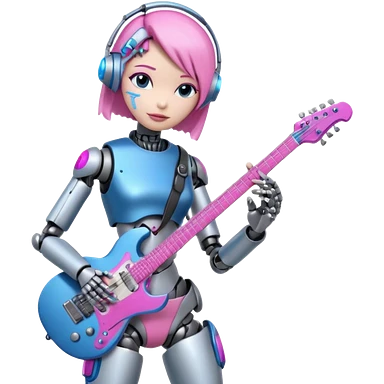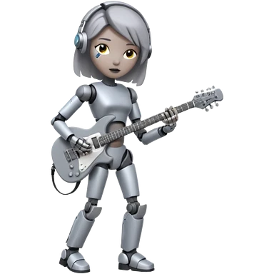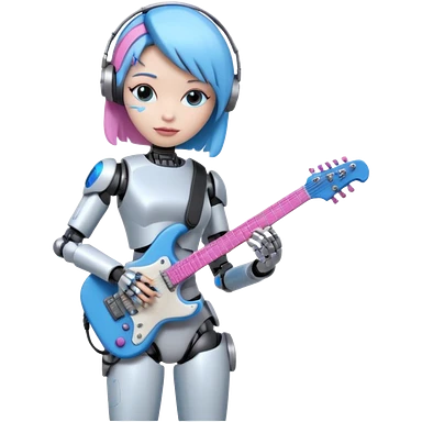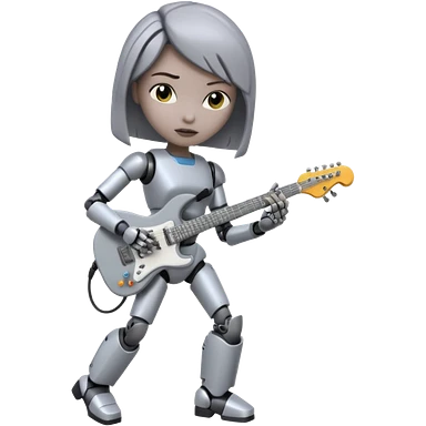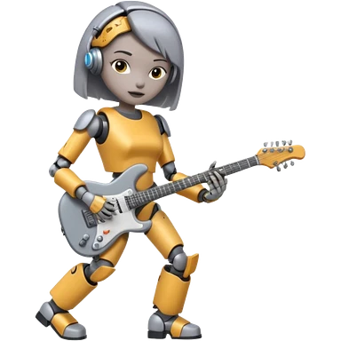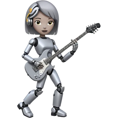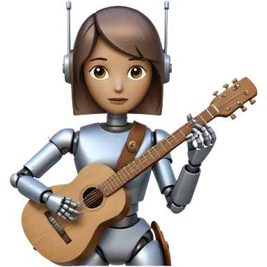 a cyper robot carry her note and electric guitar and try to change the world emoji