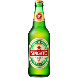 Tsingtao beer bottle, green bottle with iconic label, Chinese beer brand, foam, emoji style emoji