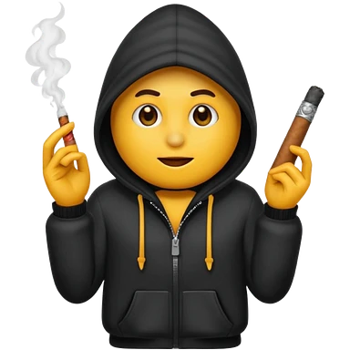Tu peux créer un emoji d'un cagoule noir qui fumé un cigare qui me le doigt comme ça 🫵🏾 emoji | AI Emoji Generator