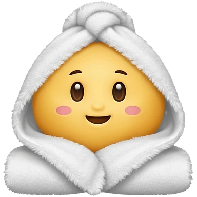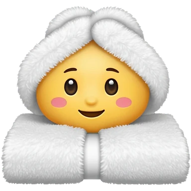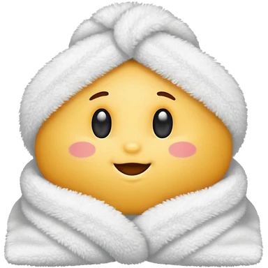 Una mujer con una toalla reliada en la cabeza y una mascarilla de belleza emoji