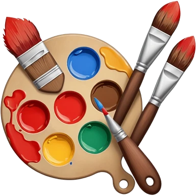 STICKER PINCEAUX ROUGE ET BRUN AVEC PALETTE DE PEINTURE ET TACHE DE PEINTURE emoji