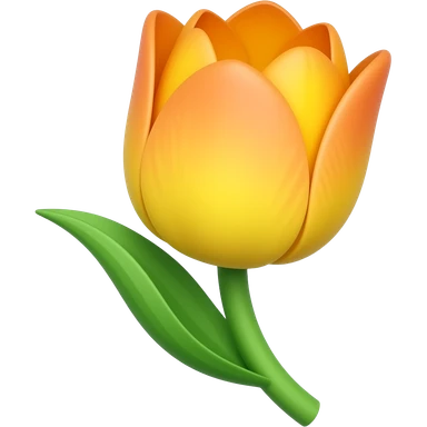 tulip with green stem, yellow flower that has orange gradient from middle to tip. the tip being the darkest orange emoji