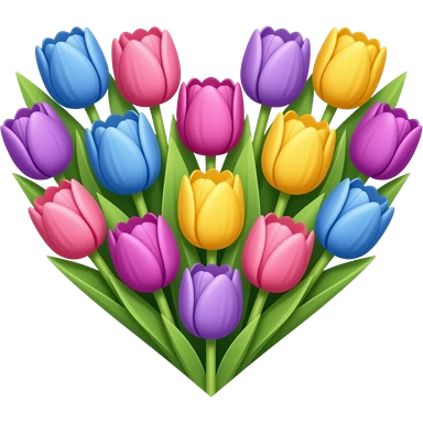 Purple, pink, blue, yellow Tulip Flowers in a heart emoji
