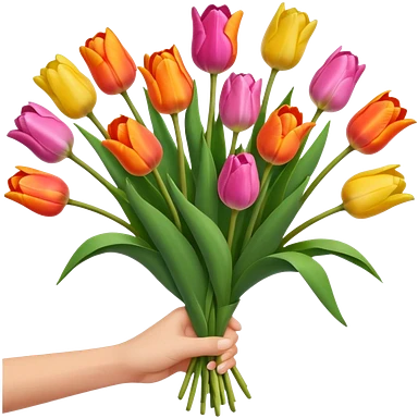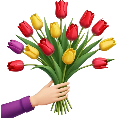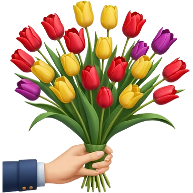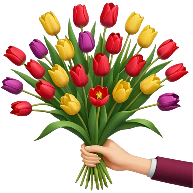 tulip boquet in one hand held boquet emoji