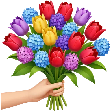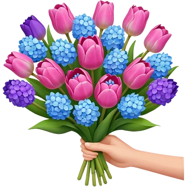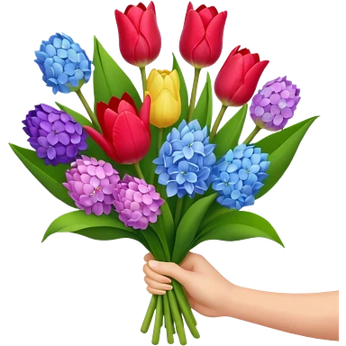 tulip, hyacinth and hydrangeas boquet in one hand held boquet emoji