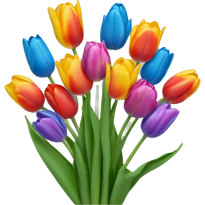 Tulipanes de todos los colores con un moño azul emoji | AI Emoji Generator